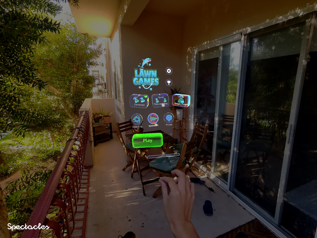 Focused on quickly getting into the action, the Lens requires minimal setup and explanation, letting players dive in any time, just like their favorite outdoor games. With the automatic dimming feature of the Spectacles, players can easily take the game outside too!